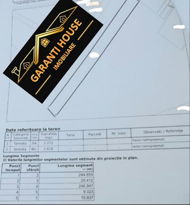 Garanti House Imobiliare va ofera spre vanzare un teren mixt in suprafata cumulata de 4900 mp (49 ari), delimitat in functie de categoria acestuia, astfel: